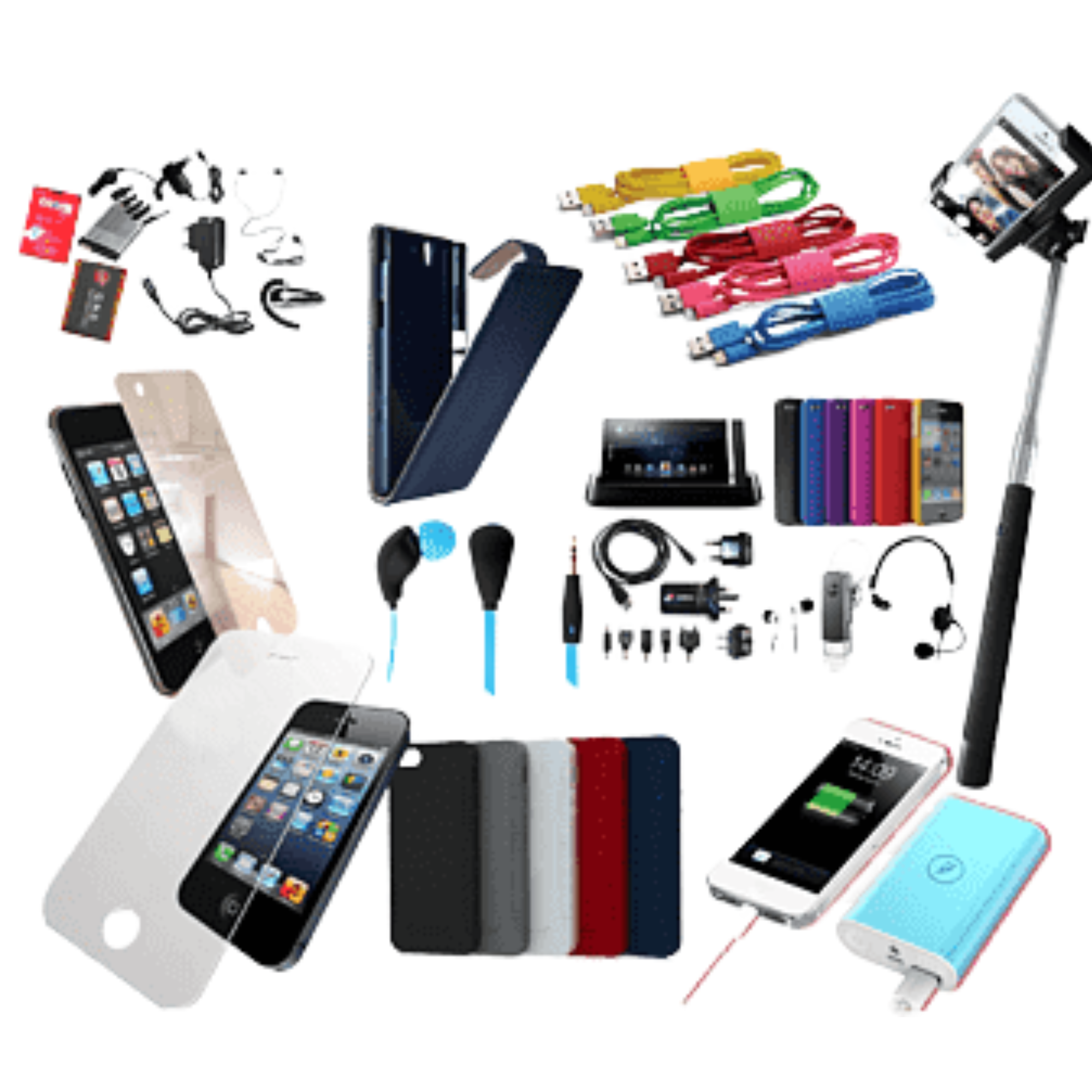 Chargers, USB cables, earphones, adapters and other essential mobile accessories.